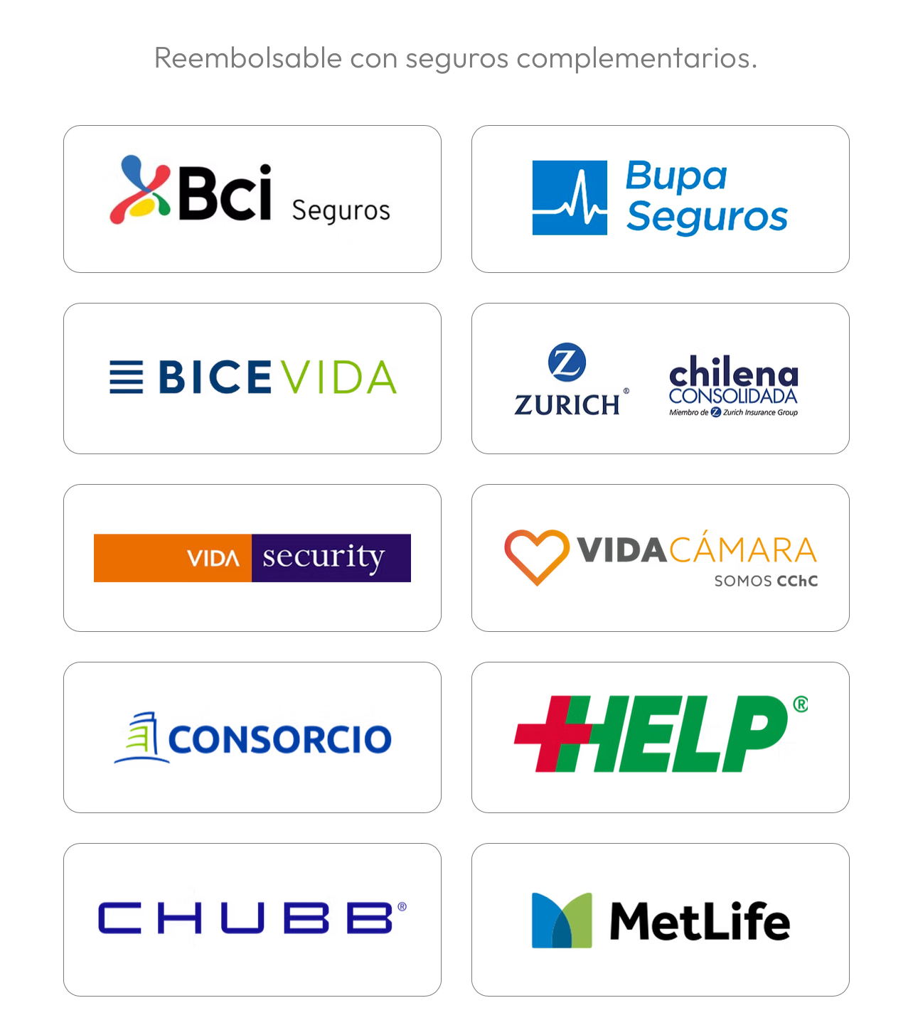 👉 BCI Seguros, Bupa Seguros, BICE Vida, Zurich, Chilena Consolidada, Vida Security, Vida Cámara, Consorcio, Help, Chubb y MetLife.